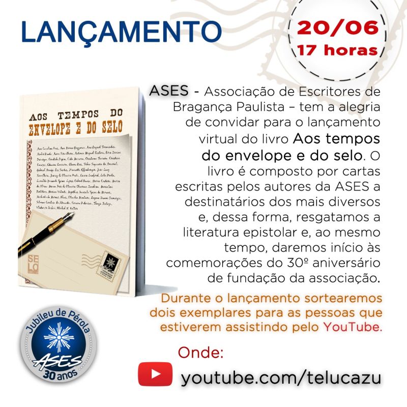 Live do lançamento do livro Aos tempos do envelope e do selo realizada em 20 de junho de 2021 |