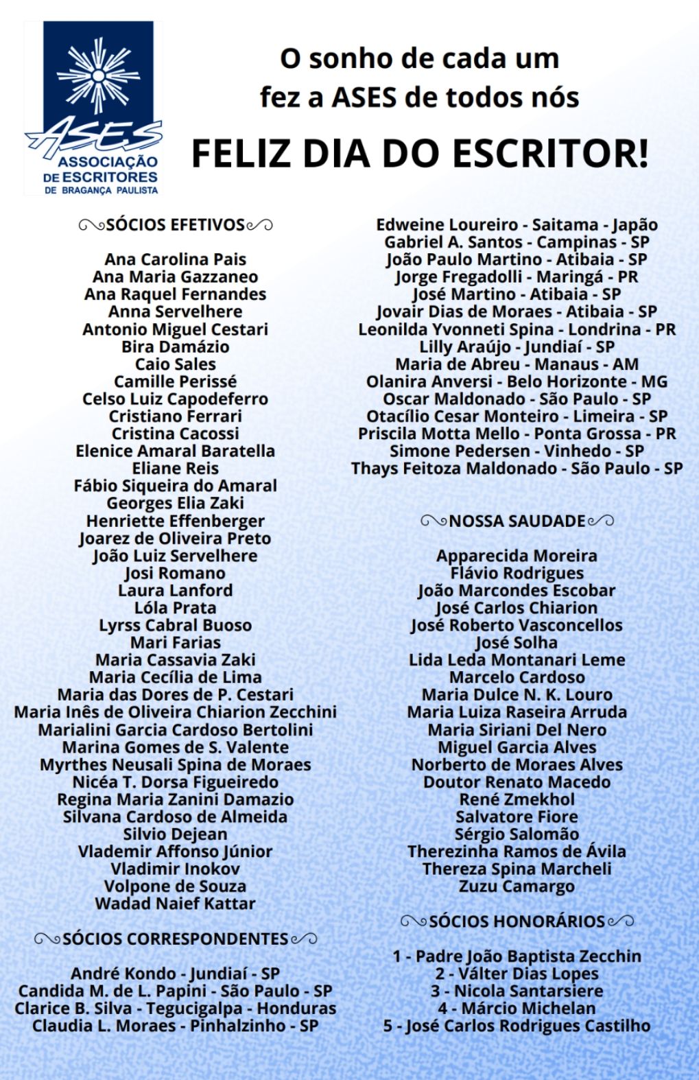 | No último dia 25 de julho, Dia do Escritor, a ASES promoveu o evento “ 20 temas sob 25 olhares”,
