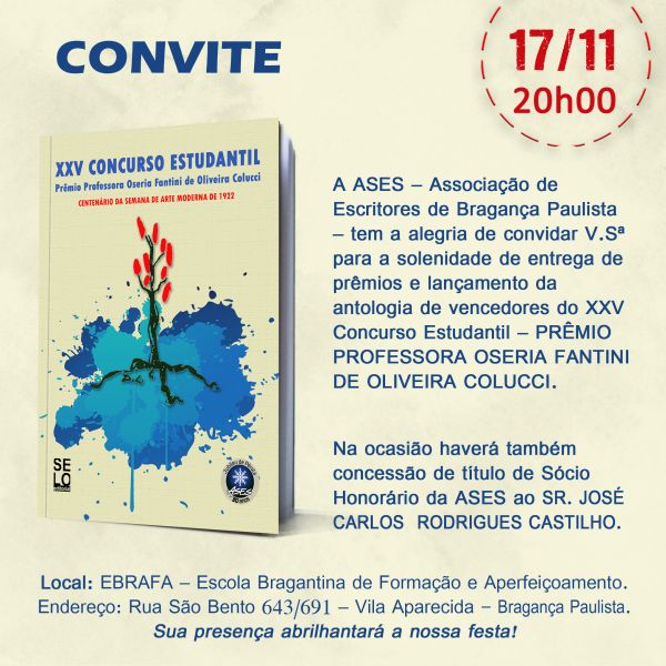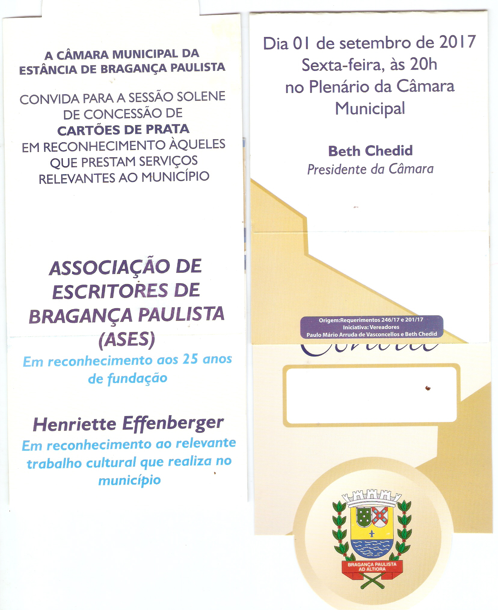 Bragança Paulista – ASES – tem a honra de convidar para a solenidade de