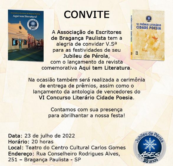 JUBILEU DE PÉROLA E PREMIAÇÃO DO VI PRÊMIO LITERÁRIO CIDADE POESIA (CLIQUE AQUI) |